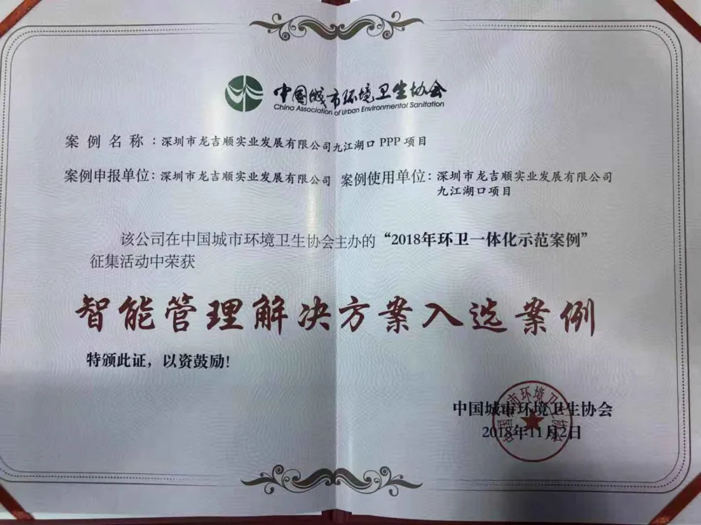 2018年11月2日-3日,由中国城市环境卫生协会主办的2018中国环境卫生国际博览会及峰会在南京国际展览中心召开,本次大会除了环境卫生行业新产品路演、“江苏省城市管理与行政执法学会”成立大会,还有“2018厕所革命、垃圾分类、环卫一体化”优秀案例发布,林政光总经理代表公司参加了本次会议并上台领奖。