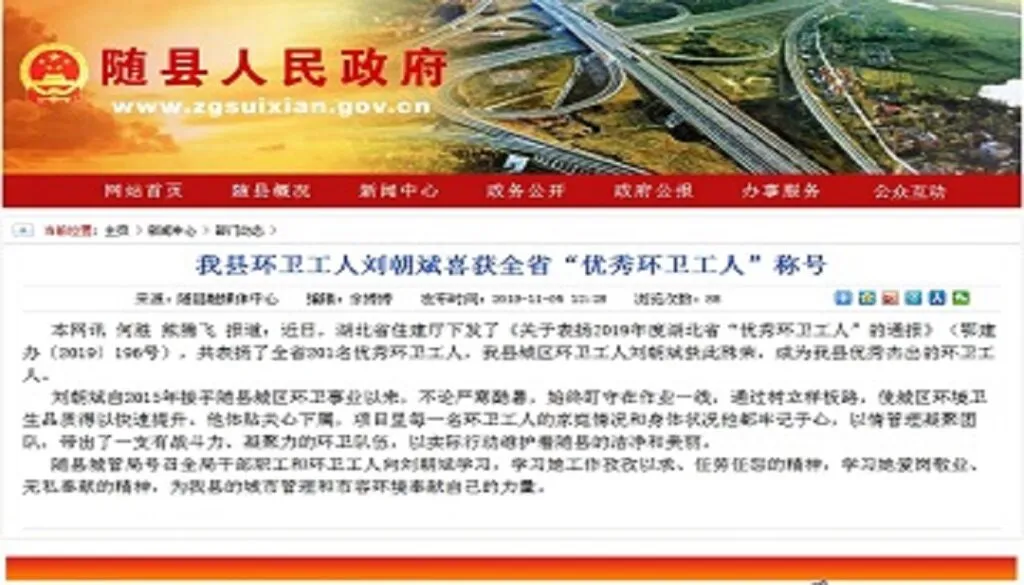 随县城管局号召全局干部职工和环卫工人向刘朝斌学习,学习她工作孜孜以求、任劳任怨的精神,学习她爱岗敬业、无私奉献的精神,为随县的城市管理和市容环境奉献自己的力量。