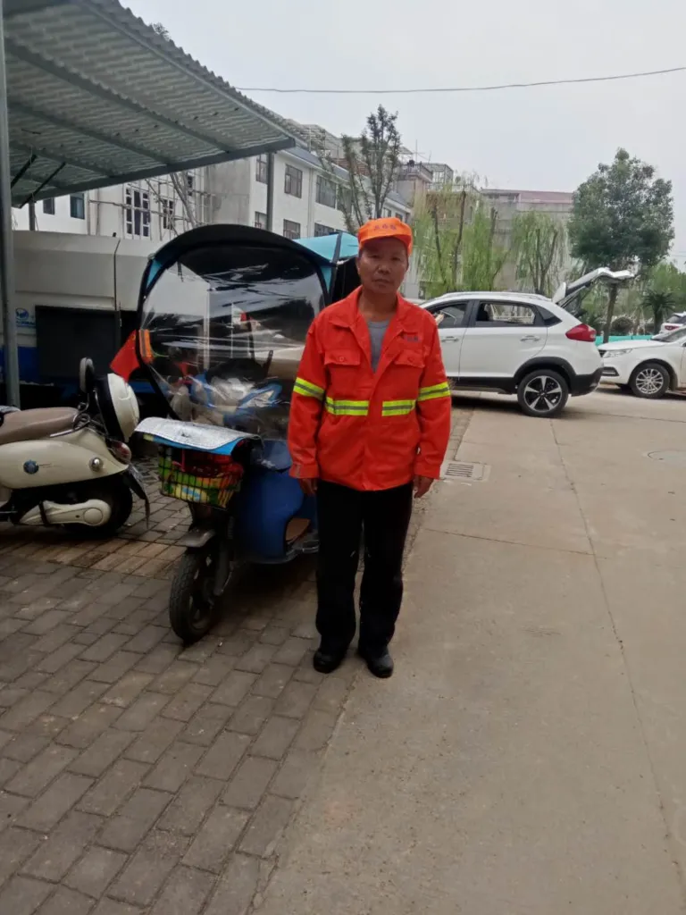 江木仔虽然已经年过六旬,在疫情期间,他毅然选择了奋战在第一线。凌晨五点,当人们还沉浸在梦乡时,他便带上手套、口罩、穿上防护服推着环卫小车,穿梭在大街小巷。江木仔主要负责蒋仕銓路与永葛大道及乐河线,全程20公里,每天对负责的作业范围的各个环卫区域进行清扫保洁,消毒消杀。身背几十斤的消毒喷雾器,对每一个垃圾桶、每一个垃圾转运站、每一辆垃圾运收车,每天进行不少于两次的消毒,做到不留死角。疫情期间,当县城确定有新冠肺炎患者时,江木仔主动配合县委防疫 部门,并承担对县文坊隔离村道及其家庭进行消杀,深得县相关部门好评 !虽为一名普通环卫工作者,但强烈的社会责任感和使命担当让他放弃假期,战斗在疫情防控的第一线,守卫着城市的干净、整洁,完成了由“城市美容师”到“群众守护者”的无悔转变。他敢为人先的魄力和自我奉献的牺牲精神书写了抗击疫情下的“最美环卫人”。
