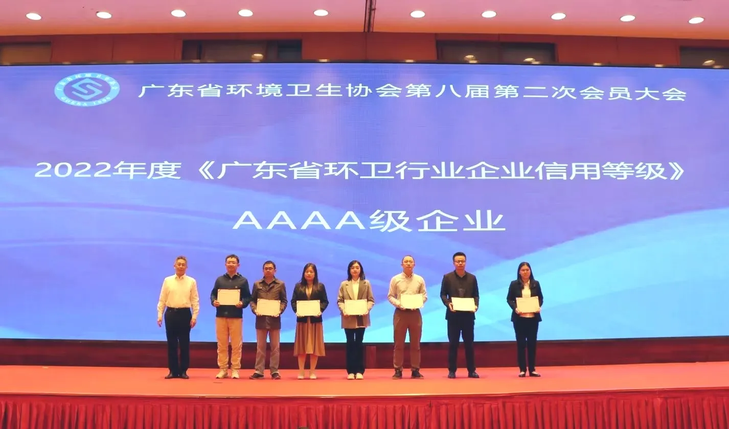 荣耀时刻:广东省环卫行业先进单位、抗疫特殊贡献会员单位 2023-03-06 | 集团新闻 3月1日上午,广东省环境卫生协会第八届第二次会员大会在广州隆重召开,公司作为副会长单位受邀出席,并获颁“广东省环卫行业企业信用等级AAAA证”“2022年度先进单位”“抗疫特殊贡献会员单位”等荣誉称号。 获颁广东省环卫行业企业信用等级AAAA证 获颁2022年度先进单位 获颁抗疫特殊贡献会员单位