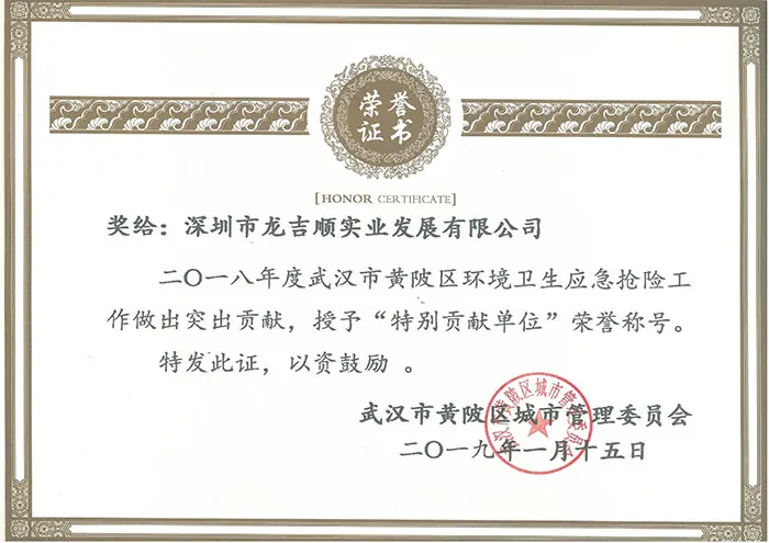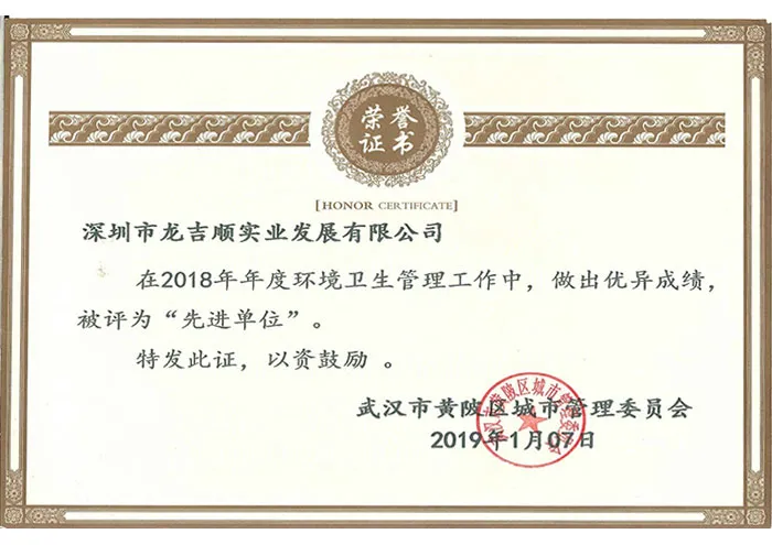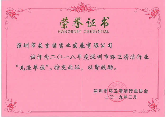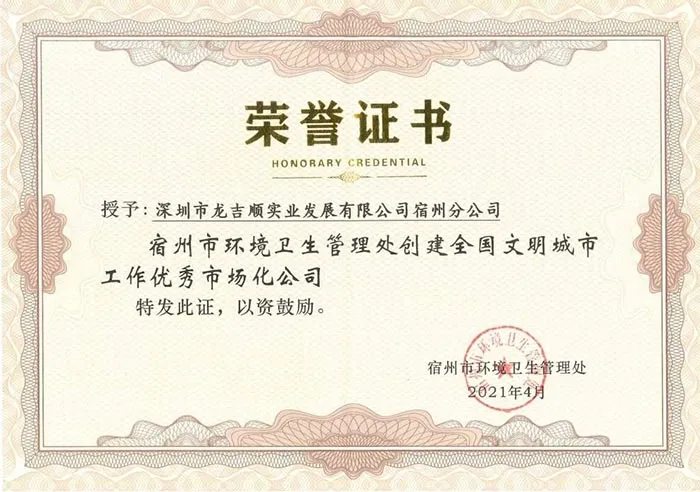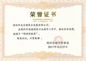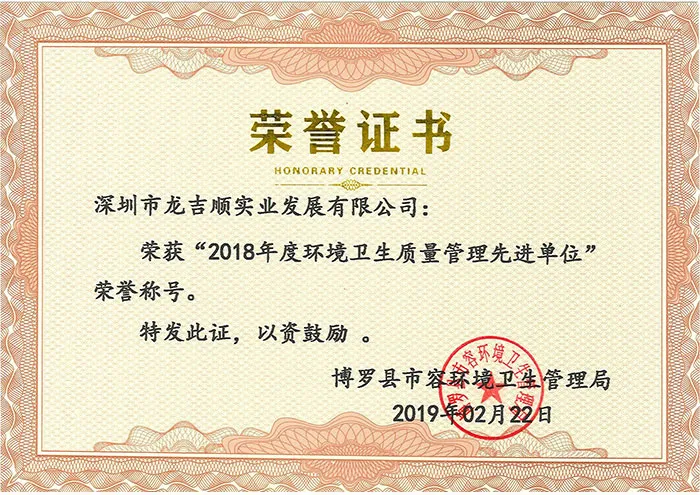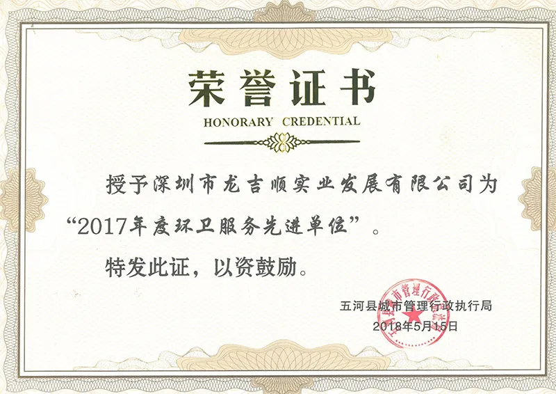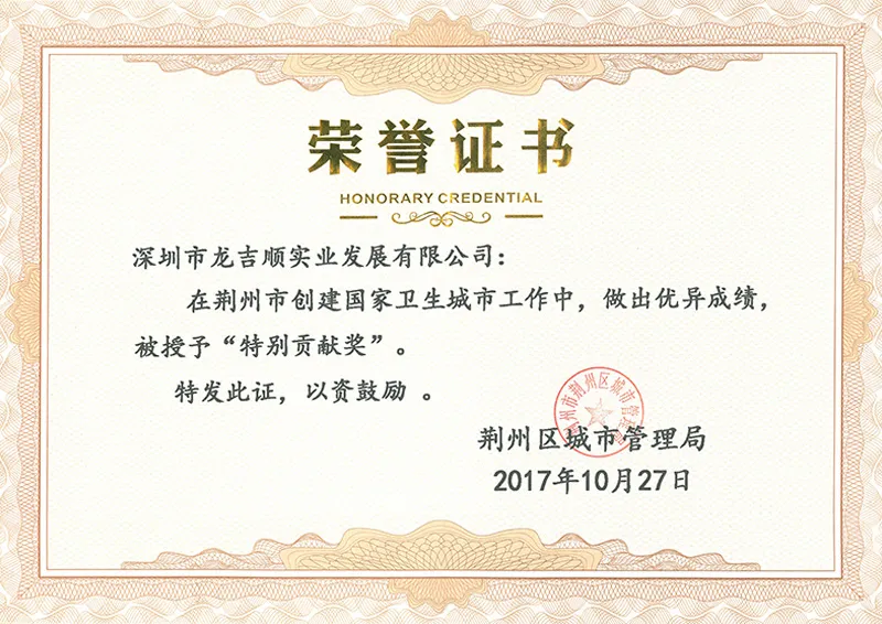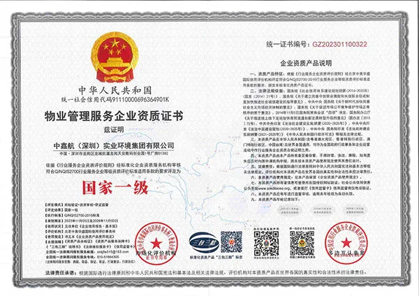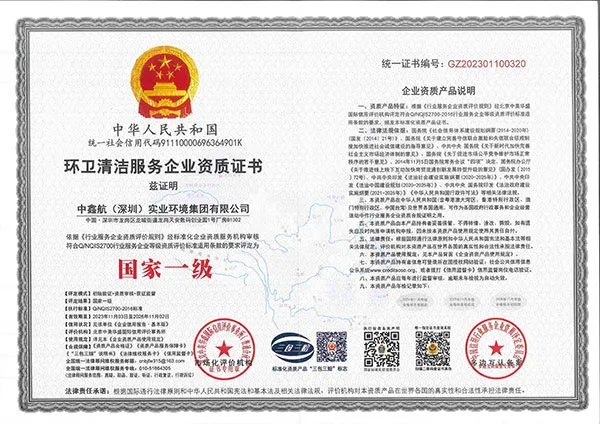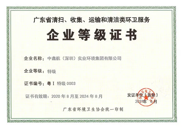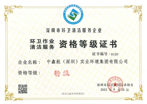 深圳市环卫清洁服务企业资格等级证书【特级】