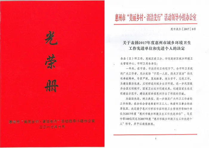 广东省清扫、收集、运输和清洁类环卫服务企业登记证书(特级)