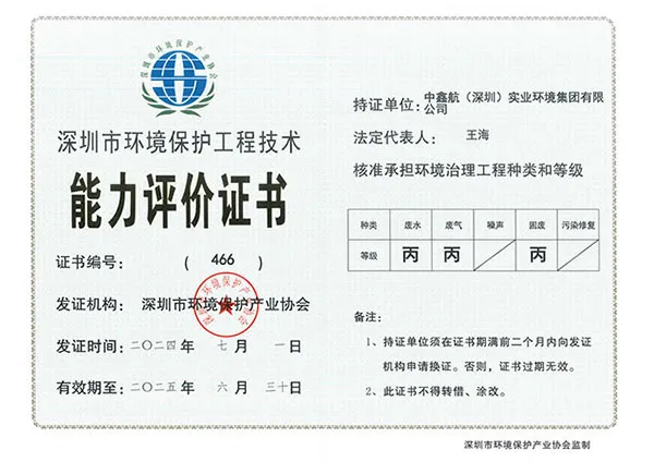 深圳市环境保护工程技术能力评价证书(丙级)正本
