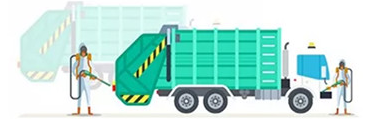⑶ 垃圾收集桶点、收运车辆作业前及作业后须进行清洗及消毒,消毒室要确保车辆内部和外部均得到有效消毒。
